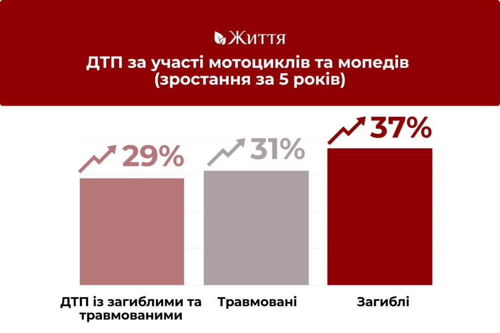 Ситуація ускладнюється стрімким збільшенням кількості мототранспорту: лише у 2025 році зареєстровано понад 52 тисячі нових мотоциклів та мопедів. Це означає більше ДТП та більшу кількість постраждалих.
