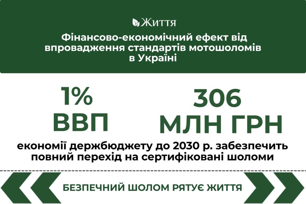 За оцінками НАН України, якби всі користувалися сертифікованими шоломами, щороку можна було б рятувати понад 100 життів та заощадити державі понад 306 мільйонів гривень у 2026–2030 роках — це майже 1% ВВП країни.