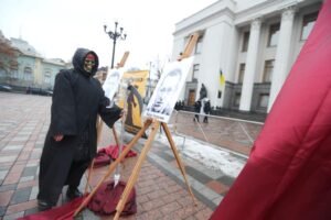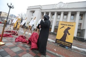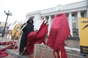 The winners of the Golden Scythe Award 2020 were announced on Constitution Square near the Parliament of Ukraine. For defending the tobacco industry’s interest to the detriment of the public health, the MP of Ukraine, Ms. Maryan Zablotskyy, received the Golden Scythe award, Mr. Yevhen Petrunyak the Silver Scythe, and Mr. Oleksiy Kovaliov the Bronze Scythe.