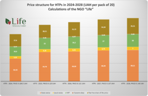 A pack of HTPs may cost UAH 125 in 2025, UAH 131 in 2026, UAH 137 in 2027, and UAH 140 in 2028.