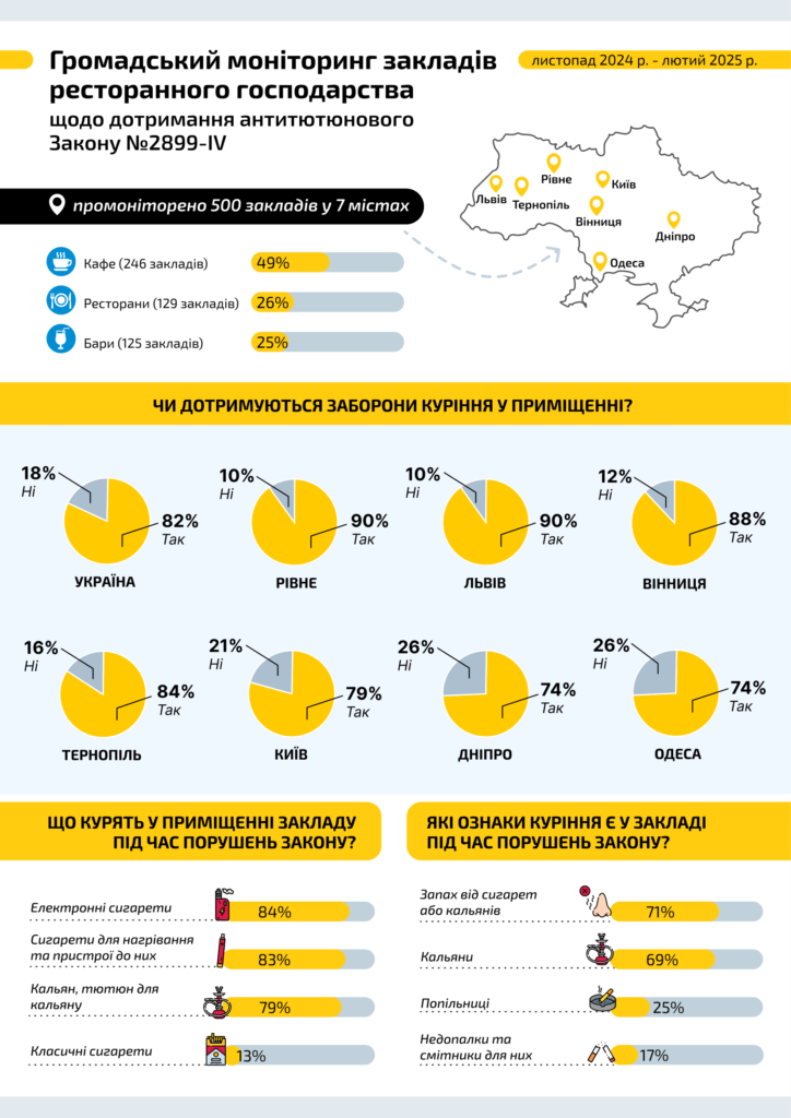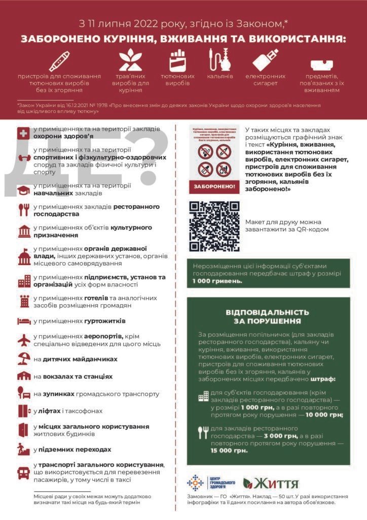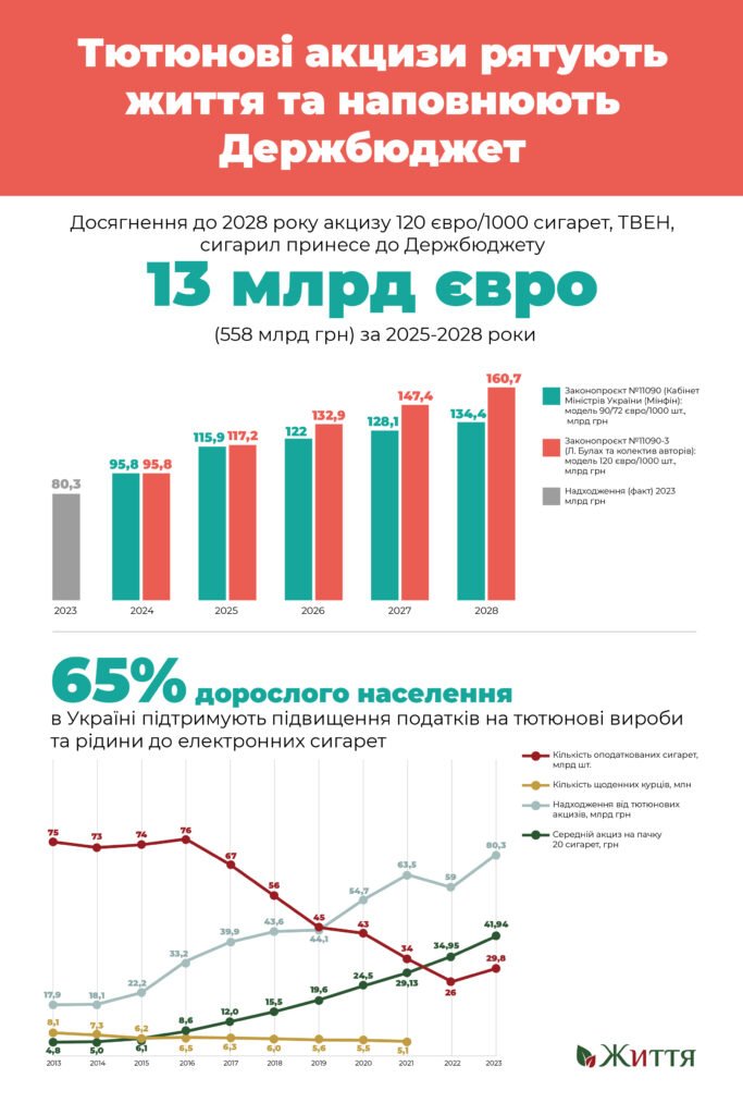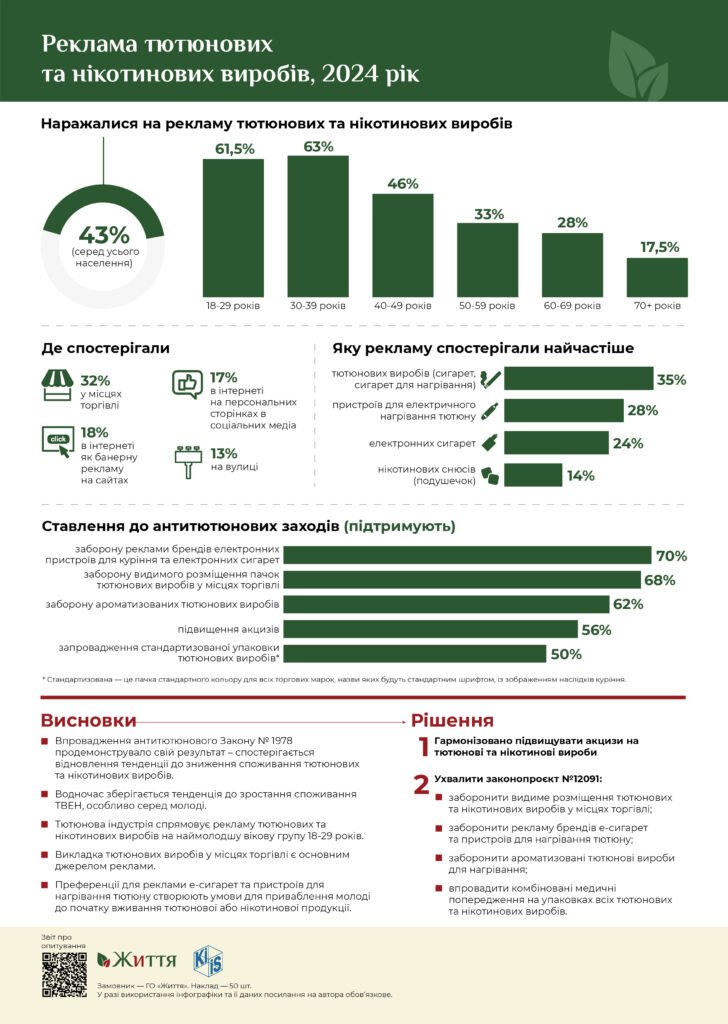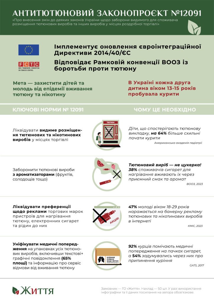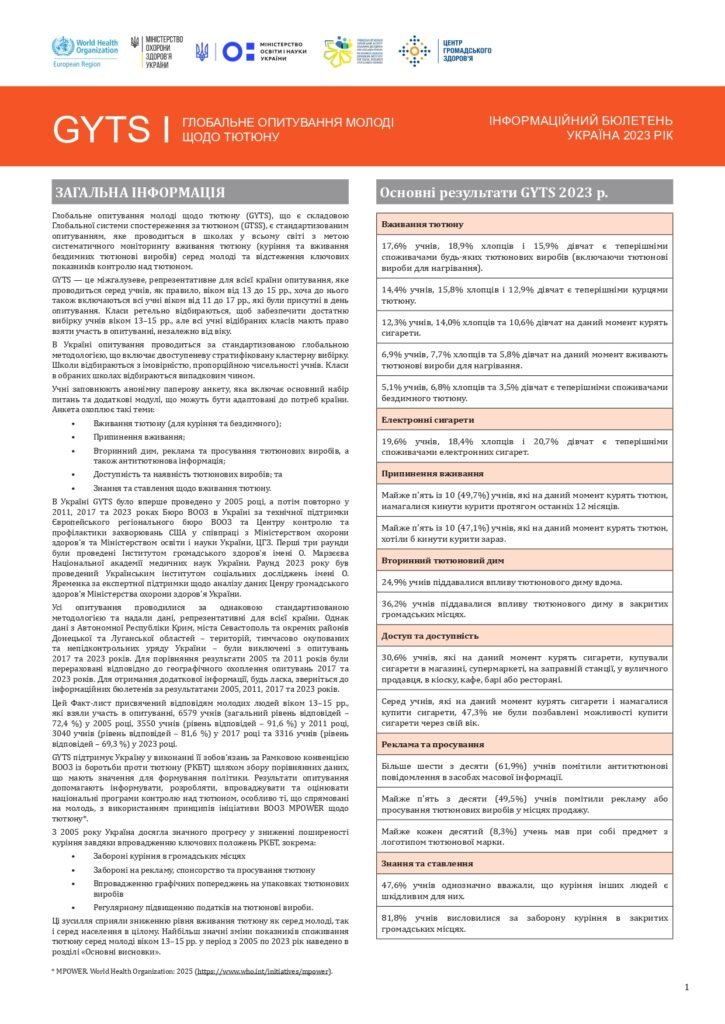 Інфографіки Українці підтримують обовʼязкове використання сертифікованих мотошоломів Нікотинові снюси – загроза для дітей, непомітна для батьків Підвищення тютюнових акцизів – гроші на перемогу Фінансово-економічна оцінка результатів впровадження Регламенту щодо безпеки мотошоломів ЕСЕ №22.06 Вживання тютюнових та нікотинових виробів серед дорослих в Україні, ВООЗ, 2024 Глобальне опитування молоді щодо тютюну, 2023 Безпечний шолом рятує життя Реклама тютюнових виробів та електронних сигарет у соціальних медіа Вживання тюютнових та нікотинових виробів (теперішні споживачі) Практики вживання тютюну та нікотину серед підлітків, 2024 Вживання тютюнових та нікотинових виробів серед населення України 18+, 2025 Маркетингові пастки тютюнової індустрії. Результати соціологічного опитування, 2025 Безпечний шолом рятує життя Опитування водіїв мотоциклів та мопедів Як тютюнова індустрія отруює довкілля Моніторинг закладів ресторанного господарства, 2025 Тютюнові акцизи в Україні у 2013-2024 роках Податкова преференція для ТВЕН – неприпустима! Вживання тютюнових та нікотинових виробів 18+, 2024 Реклама тютюнових та нікотинових виробів 18+, 2024 Ефективність комбінованих медичних попереджень, 2024 Вживання тютюнових та нікотинових виробів, КМІС, 2024 Основні положення законопроєкту №12091 Моніторинг реклами тютюнових та нікотинових виробів у місцях торгівлі Результати соціологічного опитування серед дорослого населення України у межах проведення дослідження Омнібус. Грудень 2023 Оцінка ефективності інформаційної кампанії «Стань на варті свого серця», проведеної у 2023 році Інфографіка «Обізнаність населення України про вплив тютюнових та нікотинових виробів на здоров’я» Структура ціни сигарет (грн/пачка). Чинний план VS додаткове підвищення Структура ціни сигарет для нагрівання (грн/пачка). Чинний план VS додаткове підвищення Тютюнові акцизи в Україні у 2013-2025 роках. Прогноз на 2024-2025 рр. за умов чинного плану та додаткового підвищення Тютюнова вітрина — пастка для дитини. Чому потрібно заборонити сигаретну викладку Інфографіка про заборону смако-ароматичних добавок до сигарет та рідин до е-сигарет Інфографіка про заборону реклами, стимулювання продажу та спонсорства тютюнових та нікотинових виробів Інфографіка: Вживання тютюнових та нікотинових виробів в Україні Активне і пасивне куріння кальяну шкодить вашому здоров'ю Громадський моніторинг дотримання заборони куріння у приміщеннях закладів ресторанного господарства Тютюнові компанії полюють на дітей. Результати дослідження Університету Джона Хопкінса, 2016 р. Тютюнове тіло. Дослідження ВООЗ Маркування електронних сигарет, заправних контейнерів та рідин до них Маркування трав'яних виробів для куріння Маркування тютюнових виробів для куріння Маркування бездимних тютюнових виробів Маркування бездимних тютюнових виробів Інфографіка для сімейних лікарів про тестування та вакцинацію від Covid-19 Результати опитування КМІС щодо ставлення населення України до антитютюнових заходів у 2022 році Інформація для суб'єктів господарювання усіх форм власності Інформація для закладів ресторанного господарства Що робити, якщо вас обкурюють? Тютюнові акцизи в Україні у 2013-2021 роках Доповідь ВООЗ про глобальну епідемію тютюну 2021 Законопроєкт 4358 Комплексний антитютюновий законопроєкт №4358: друге чи