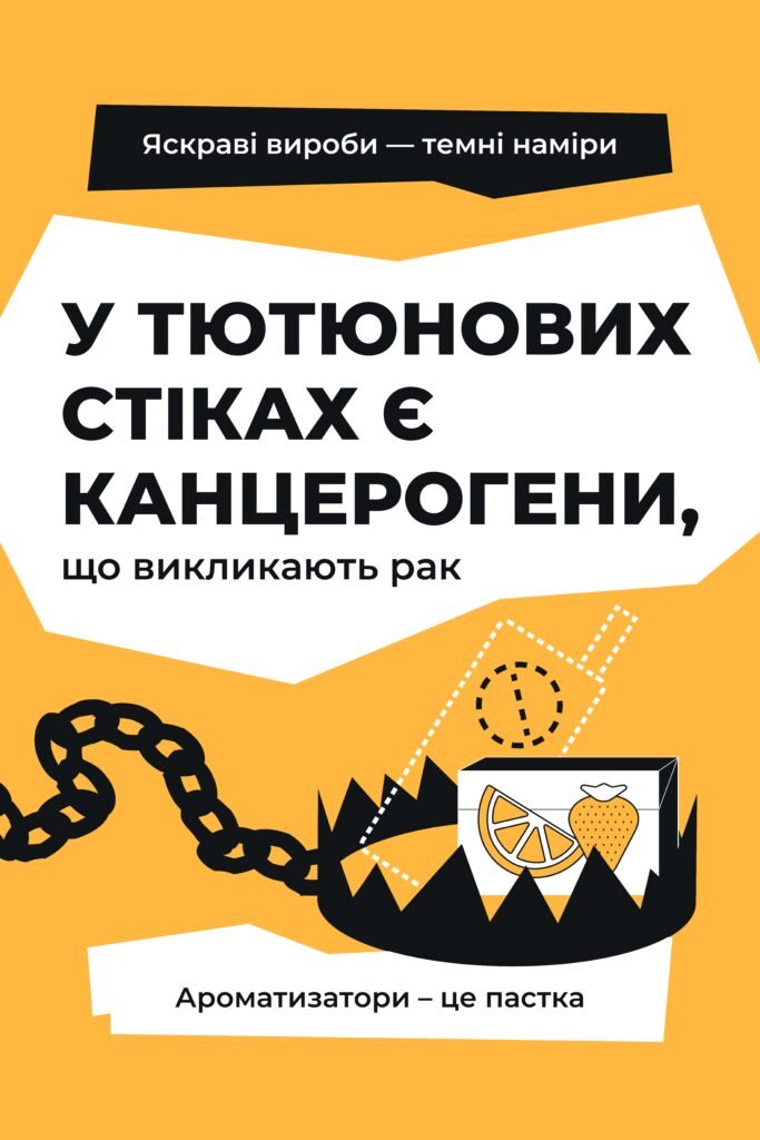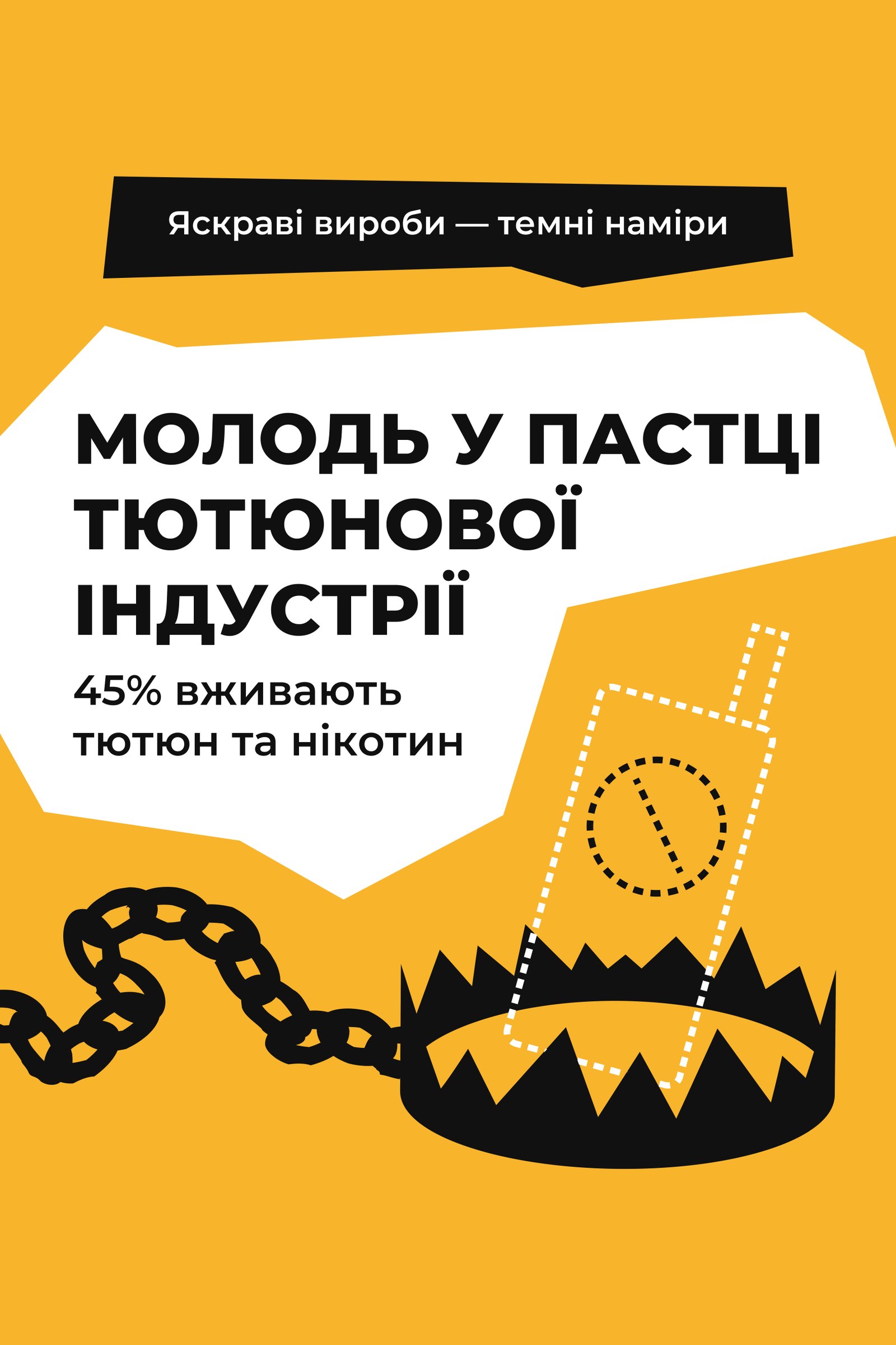ГО “Життя” у співпраці з Центром громадського здоров’я МОЗ України проводить інформаційну кампанію «Яскраві вироби – темні наміри», спрямовану на зменшення впливу маркетингу тютюнових виробів для нагрівання (ТВЕНів) на молодь та зниження рівня їх споживання серед молодого покоління.