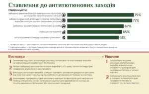 - Протидія забороні видимого розміщення тютюнових та нікотинових виробів у місцях торгівлі — основного джерела реклами такої продукції