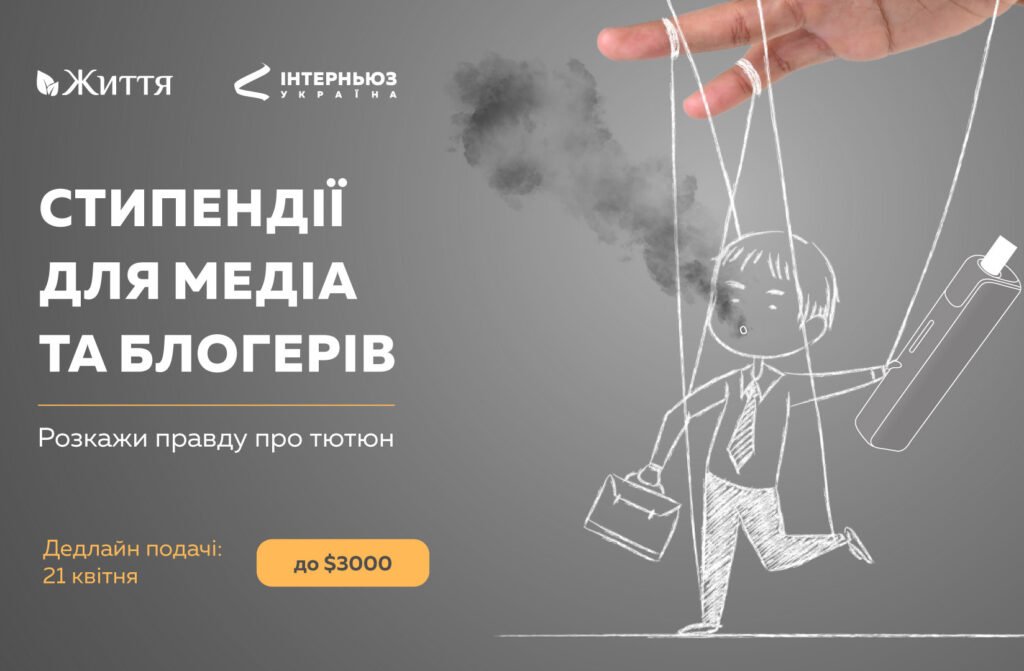 Пропонуємо стипендії для журналістів та лідерів думок в межах програми «Media Fellowship-2024». Запрошуємо створювати контент про проблему поширеності куріння в Україні та необхідність законодавчих змін, щоб захистити українців від приваблення до вживання тютюну та нікотину.