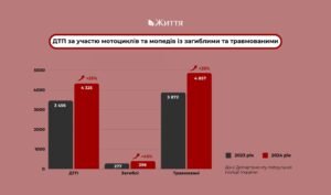За даними Національної поліції України, у 2024 році зафіксовано рекордну за останні 4 роки кількість дорожньо-транспортних пригод (далі — ДТП) за участю мотоциклів та мопедів — 4 325 випадків із загиблими та/або травмованими. Це на 25% більше, ніж у 2023 році, що свідчить про загострення проблеми безпеки на дорогах для водіїв та пасажирів мототранспортних засобів.