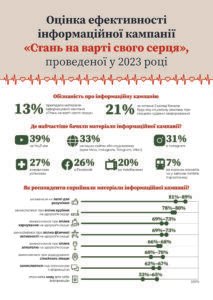 Загалом матеріали інформаційної кампанії «Стань на варті свого серця» отримали близько 30 млн переглядів, які включають покази на Youtube, Google, Facebook, Instagram, телебаченні, радіо, у приміщеннях медичних закладів, у вагонах потягів Укрзалізниці та на екранах залізничних вокзалів Києва, Львова, Дніпра, Харкова та Луцька.