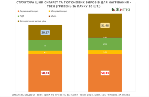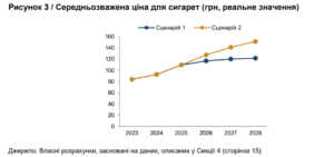Якщо ж підвищення акцизу відбудеться до 120 євро/1000 шт. до 2028 року, середньозважена ціна пачки сигарет зростатиме наступним чином: у 2025 році до 110 грн, 2026 – до 128, 2027 – до 141, 2028 – до 152 грн за пачку.