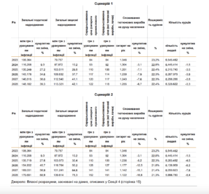 Перший сценарій відповідає моделі підвищення, прописаній в урядовому законопроєкті №11090: до 90 євро на 1000 шт. сигарет та сигарил та 72 євро на 1000 шт. тютюнових виробів для нагрівання до 2028 року. Другий сценарій розглядає модель 120 євро на 1000 шт. на все (сигарети, сигарили, ТВЕН), яку пропонував альтернативний законопроєкт №11090-3.