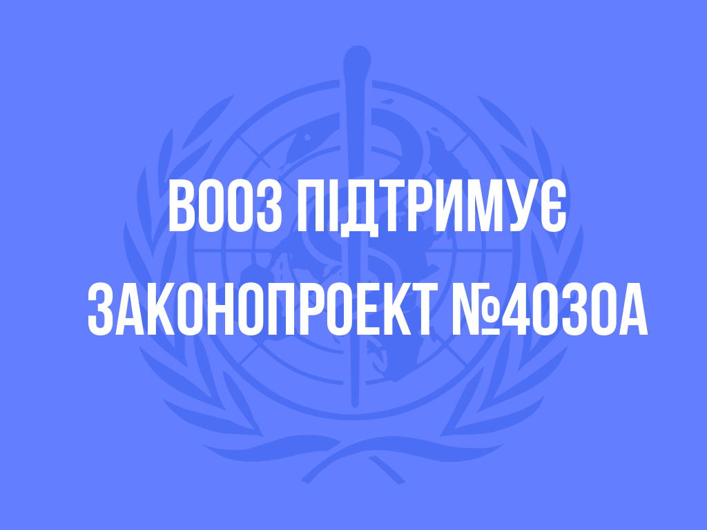 27 вересня Представництво Всесвітньої організації охорони здоров’я в Україні надіслало Голові Верховної Ради України Андрію Парубію лист підтримки законопроекту № 4030а.