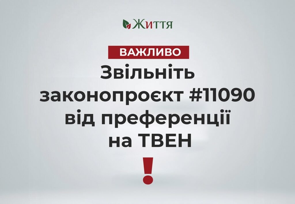 Закликаємо народних депутатів України під час другого читання врахувати поправки №38, №357 (та/або аналогічні за змістом) у законопроєкті №11090, які ліквідують податкову преференцію на ТВЕН. В разі збереження преференційного становища для ТВЕН – не голосувати за законопроєкт №11090 та повернути його на повторне друге читання.