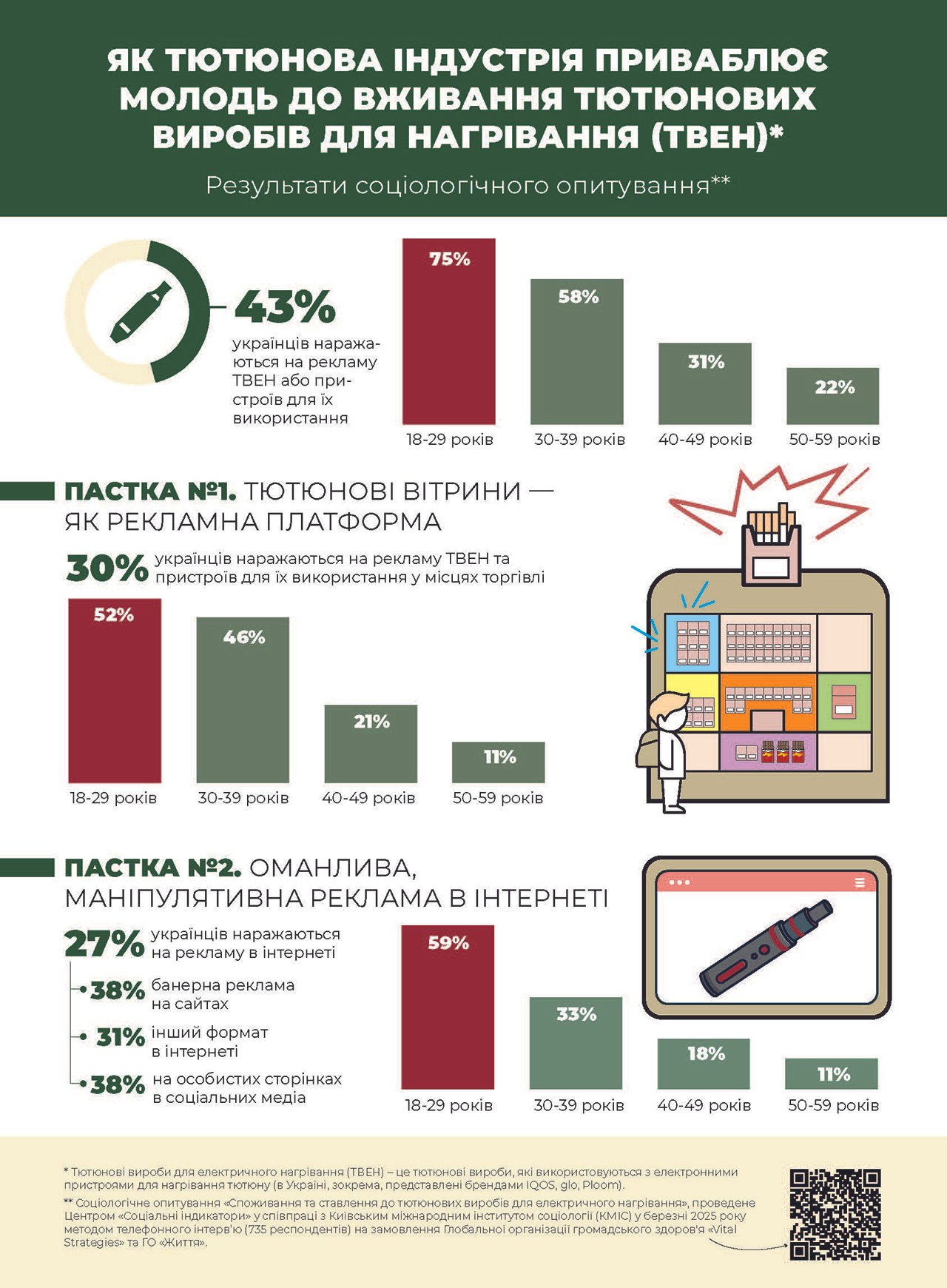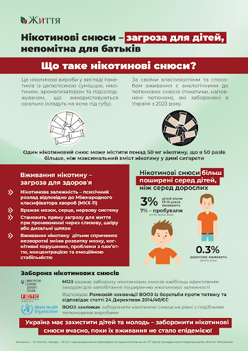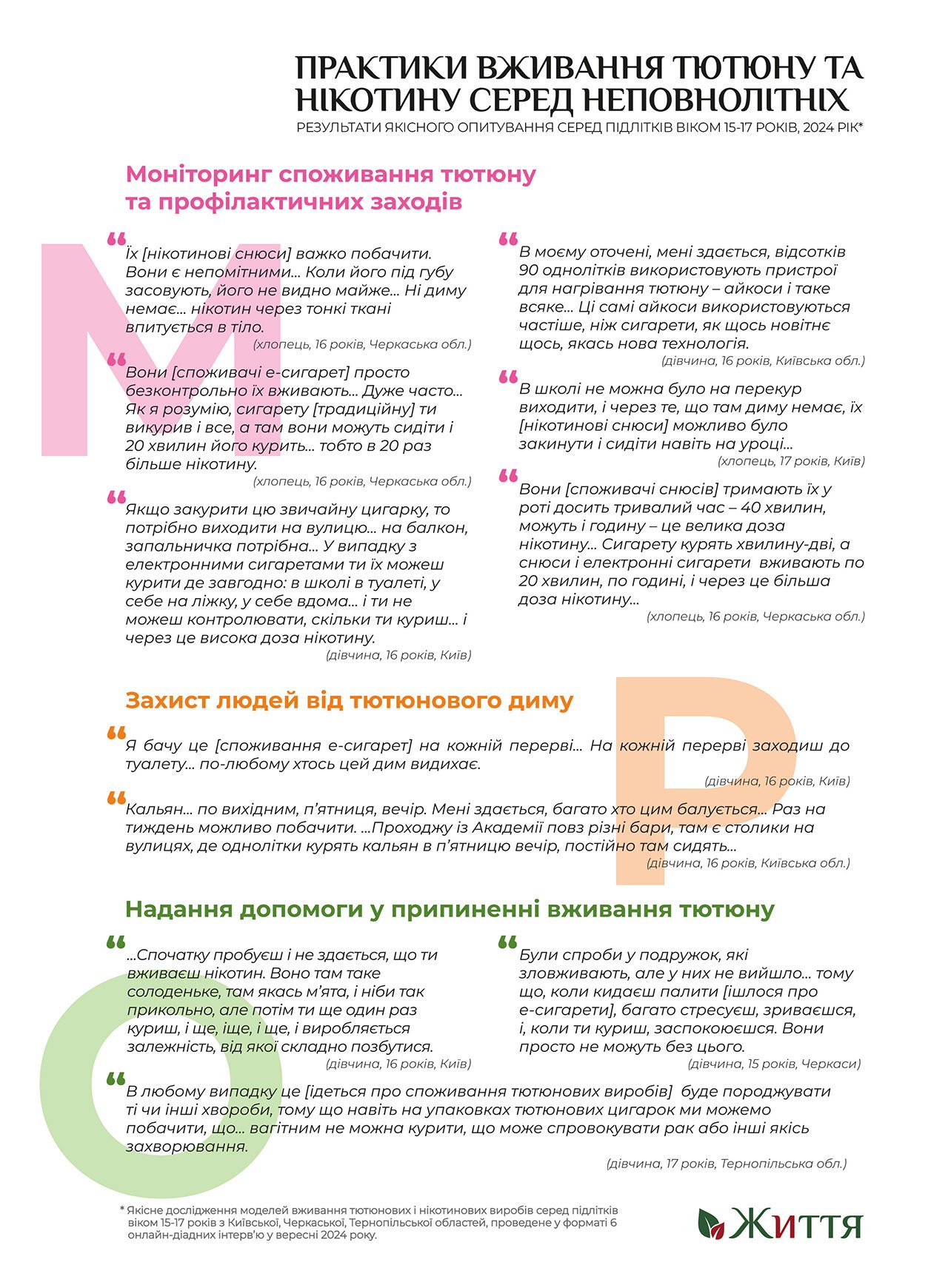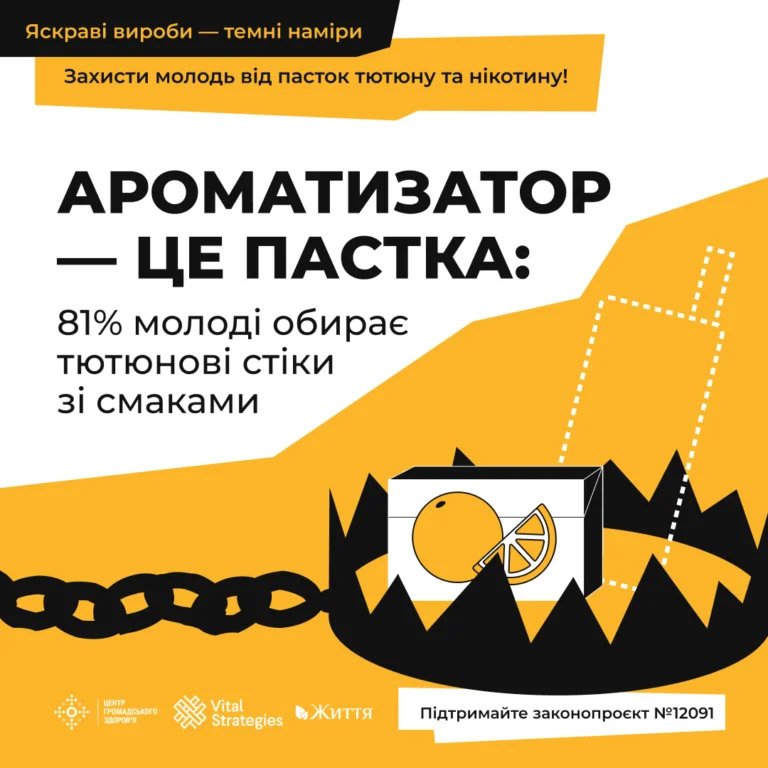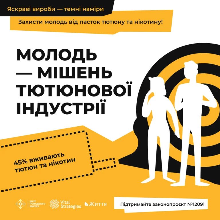 У травні–серпні 2025 року ГО «Життя» спільно з Центром громадського здоров’я провела національну інформаційну кампанію «Яскраві вироби — темні наміри», спрямовану на викриття маніпулятивних практик тютюнової індустрії для приваблення дітей та молоді до вживання тютюнових виробів для нагрівання.