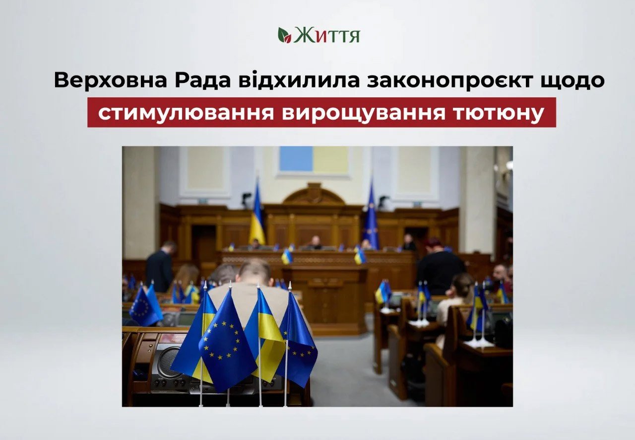У жовтні 2025 року Верховна Рада України відхилила законопроєкт №13628 про стимулювання вирощування тютюну, на чому наполягала ГО «Життя». Така ініціатива суперечить Закону №2899-IV та міжнародним зобовʼязанням України щодо захисту населення від шкоди тютюну та звільнення економіки від тягаря тютюнової індустрії відповідно до Рамкової конвенції ВООЗ із боротьби проти тютюну.