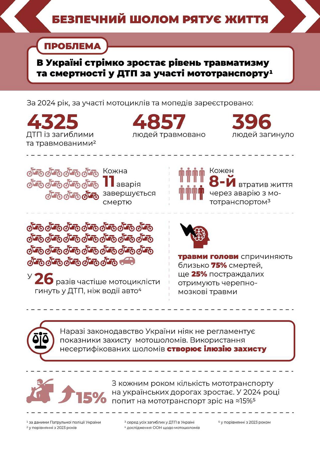 Завдяки нашим зусиллям до проєкту постанови Кабінету Міністрів України щодо затвердження Технічного регламенту було включено європейський стандарт безпеки мотошоломів ECE № 22.06. Це рішення потенційно дозволить зберегти сотні життів та близько 1% ВВП для бюджету України до 2030 року.