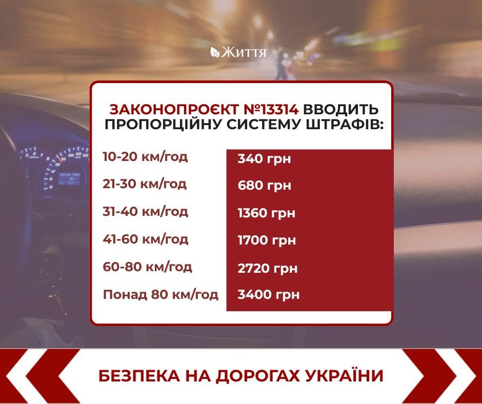 -розширення градації відповідальності за перевищення швидкості: що більша швидкість, то вищий штраф.