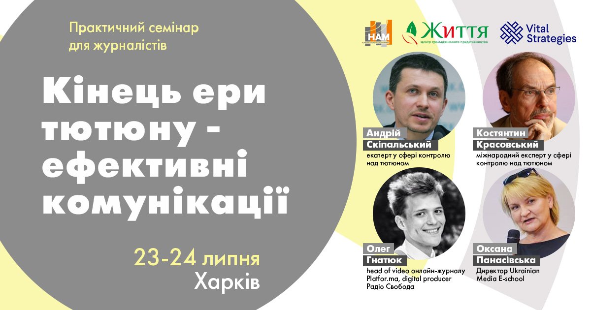 Незалежна асоціація телерадіомовників спільно з ГО «Життя» за підтримки Неприбуткової Наукової Організації Vital Strategies розпочинає набір учасників на практичні семінари в регіонах України «Кінець ери тютюну…