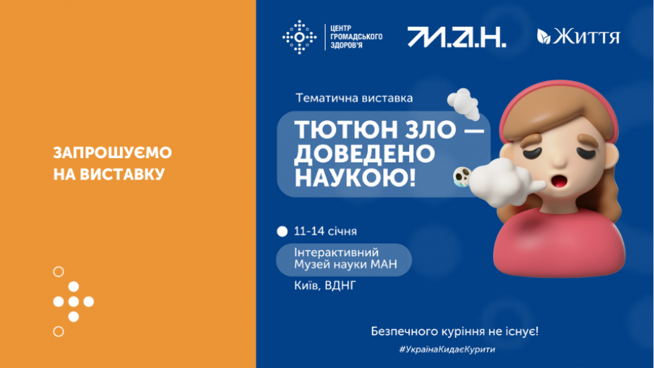 У Києві в інтерактивному Музеї науки МАН на ВДНГ з 11 по 14 січня відбудеться тематична виставка Центру громадського здоров’я за підтримки ГО «Життя» «Тютюн…