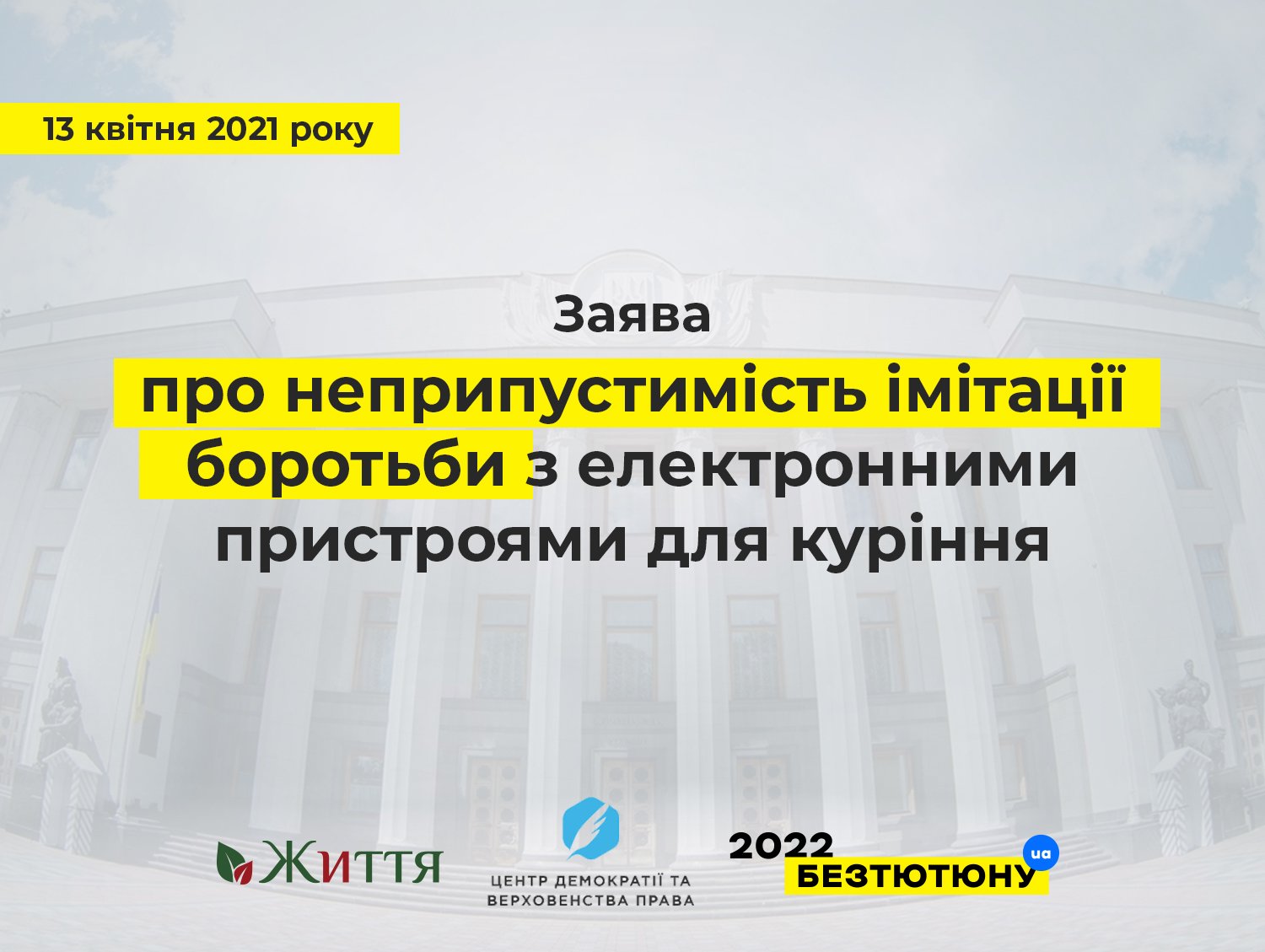 Від імені ГО “Життя” та ГО “Центр демократії та верховенства права” заявляємо про неприпустимість імітації боротьби із захистом здоров’я молоді від шкоди електронних пристроїв для…